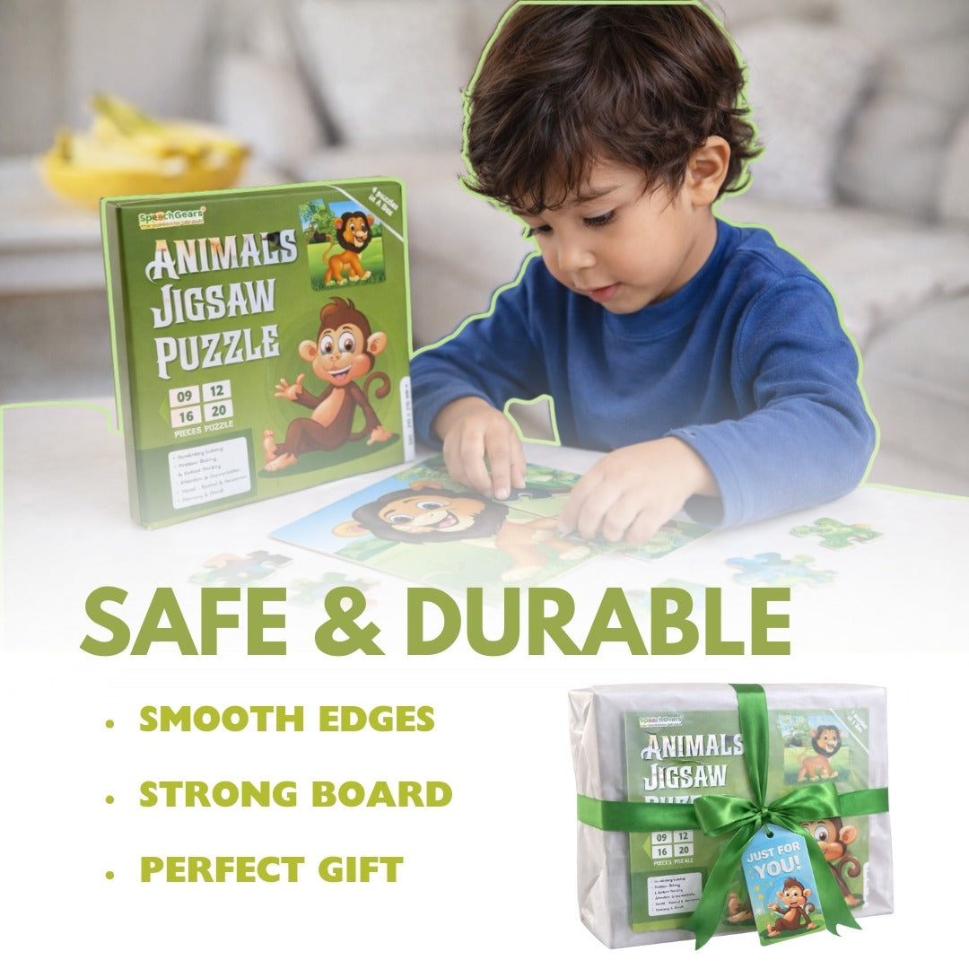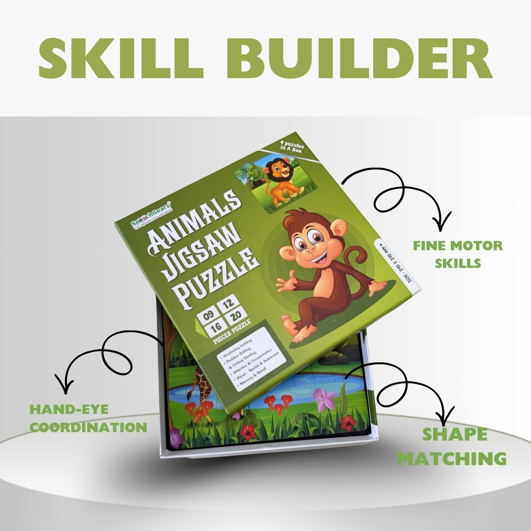 The Animals Jigsaw Puzzle by SpeechGears India is a early learning educational puzzle for toddlers and preschoolers that combines fun with skill development. Featuring bright illustrations of animals and matching pieces, this puzzle helps children recognize animals while strengthening foundational cognitive and language skills.